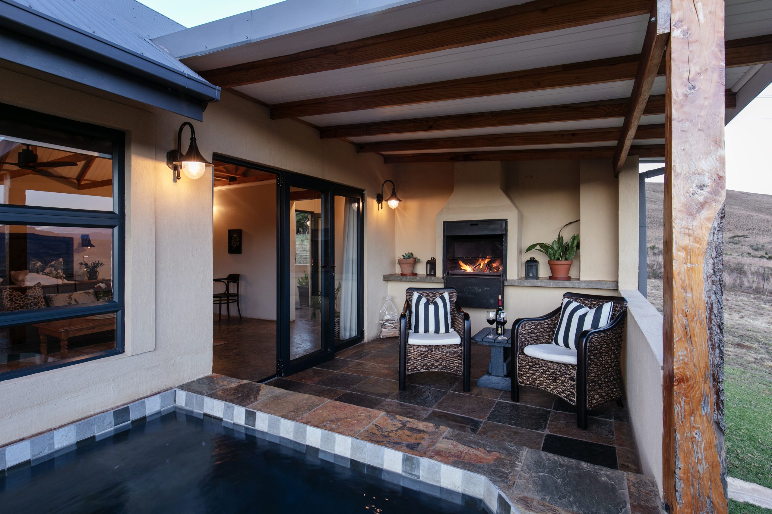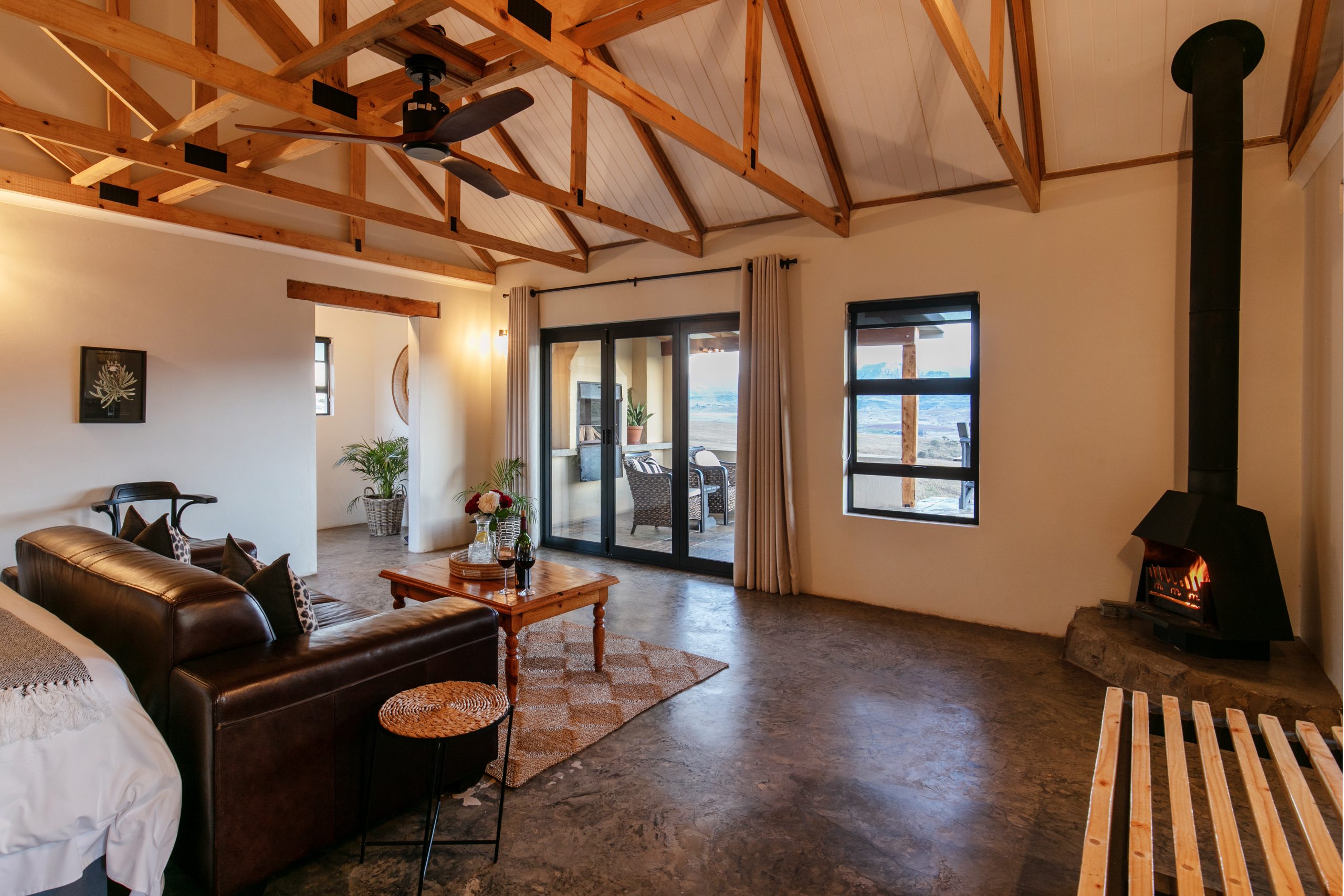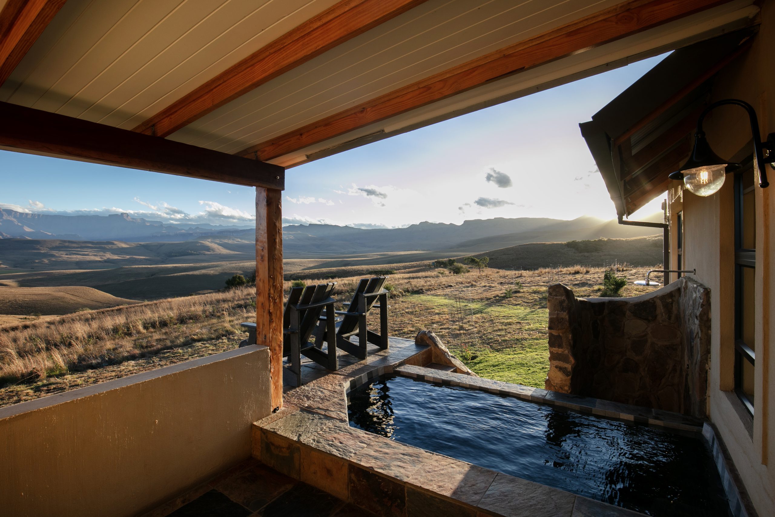 Deluxe Comfort in a Scenic Setting Deluxe comfort in a scenic setting with king-size extra-length bed, heated ensuite (double shower + slipper bath), and cozy log fireplace. Stunning mountain and valley panoramas. No children allowed. Kitchen: Gas stove/oven, kettle, toaster, medium fridge/freezer, Nespresso machine Outdoor: Patio braai + private plunge pool Amenities: Free WiFi, daily…