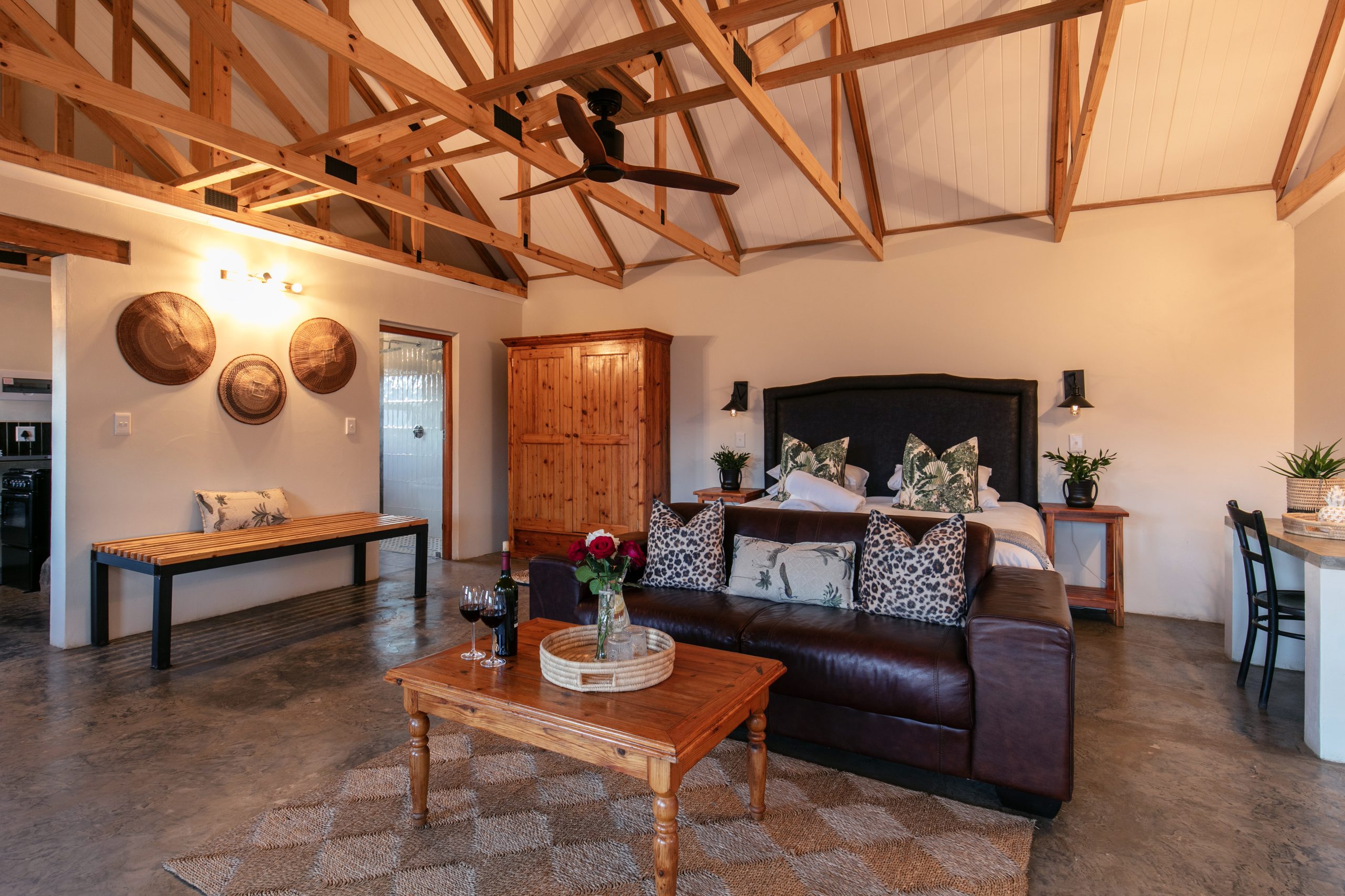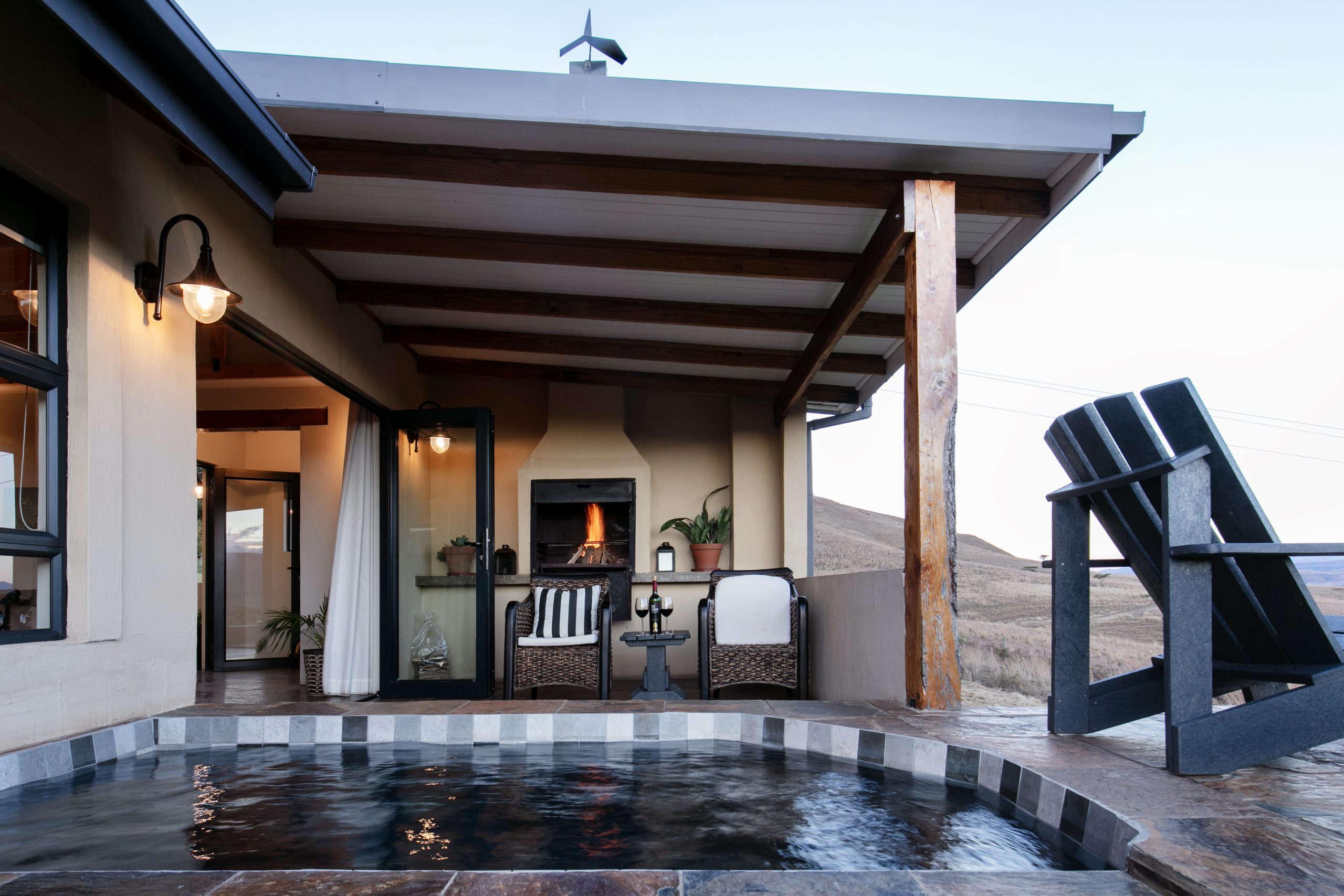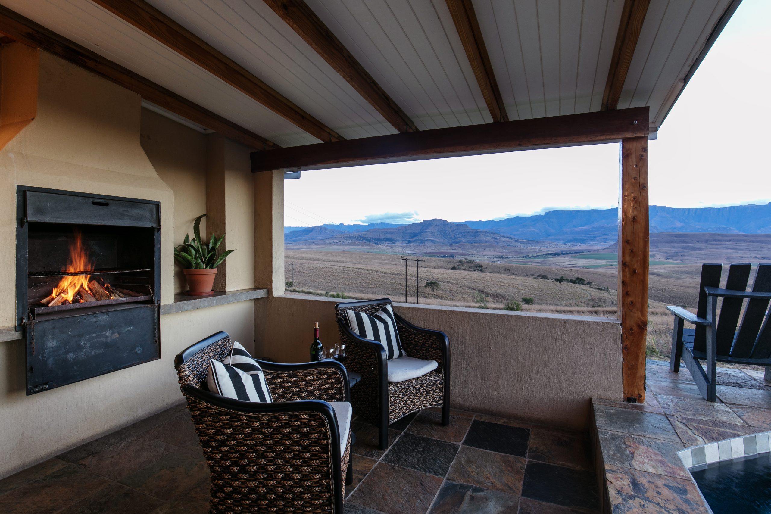Deluxe Comfort in a Scenic Setting Deluxe comfort in a scenic setting with king-size extra-length bed, heated ensuite (double shower + slipper bath), and cozy log fireplace. Stunning mountain and valley panoramas. No children allowed. Kitchen: Gas stove/oven, kettle, toaster, medium fridge/freezer, Nespresso machine Outdoor: Patio braai + private plunge pool Amenities: Free WiFi, daily…